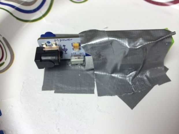 Conectar la alimentación al motor DC y fijar a la placa con cinta adhesiva.