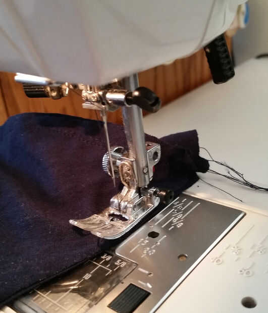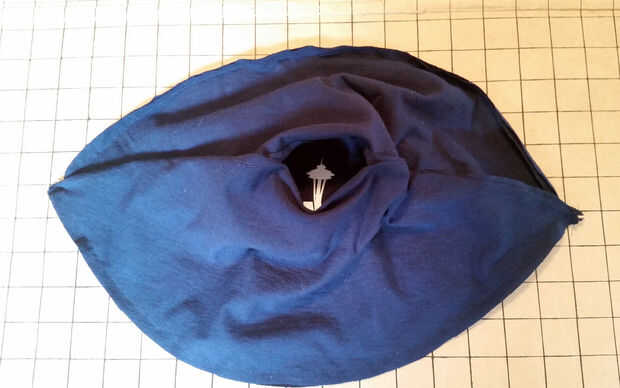 A continuación, coser la pieza 4 restante de la tela al borde de uno de sus 3 piezas y luego el otro. Asegúrese de dejar al menos un espacio de 3 pulgadas en medio de sus costuras para que pueda girar a la derecha hacia fuera y mecharla.