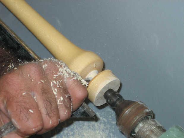 A continuación, quitar el palo del torno y use que una japonesa pequeña motosierra para recortar los pedazos pequeños y los extremos de la arena