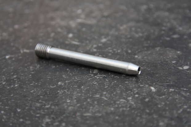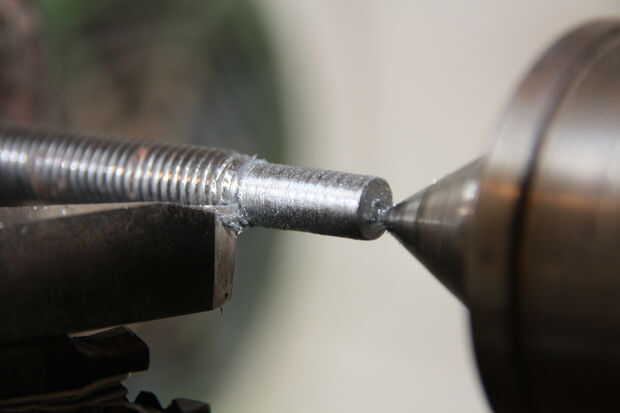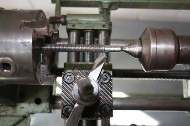 Primero necesita arreglar el portador perno o perno prisionero en el mandril de su torno. Asegúrese de que no apretar el perno perno prisionero o portador en los subprocesos que desea utilizar al final porque le arruinara sus hilos. Girar hacia abajo para que quepan en los tubos de acero inoxidable seleccionado sobre una longitud de unos 65 mmm de diámetro. Puede adaptar esta medida si desea otras dimensiones. Asegúrese de que usted adapta la tapa con él.