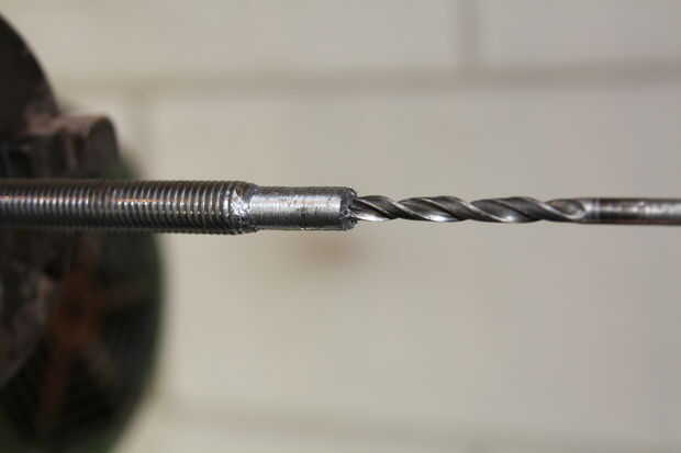 Ahora la pluma se hace más o menos, puede utilizar el escoplo a parte de unos 75 mm. Si es correcto que te dejará con unos 10 mm valor de hilos en el acero. También el agujero que es perforado no han conseguido a través de lo agujeros.