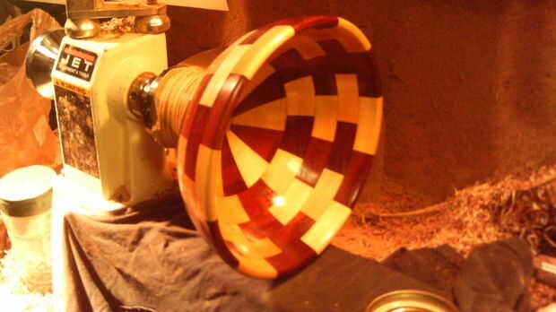 Puesto que este plato podría ser utilizado para alimentación, utilicé un acabado de aceite de tung de alimentos seguros. Gire el recipiente a mano como aplicar el aceite de tung con un paño o cepillo. La primera capa puede ser bastante pesada, como la madera absorbe muy rápidamente. Puede aplicar una segunda capa dentro de una hora. Después de la segunda capa, siga las instrucciones en la lata para su acabado. Esperé 8 horas para que el aceite de tung se seque y endurezca, y luego otra vez lijar con grano 400 y aplica otra capa. Repita según sea necesario, utilizando cada vez más finas arenas