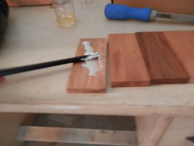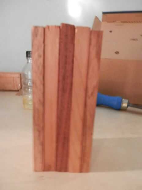Como dice el titulo pegado en la madera. primero organizar la forma y el patrón de la madera que desea que hice acacia, cedro teak,cedar,acacia.roughen hacia los lados con papel de grano arena 50. pegamento fije todo en un vicio mi vicio era pequeño para caber en, por lo que tomó un ladrillo realmente pesado y aseguradas entre dos tablones de madera. esperó un día para que el adhesivo perfectamente abrigo seco o cure.also, se aferran en abrigo para evitar que se pegue a los tablones de madera.