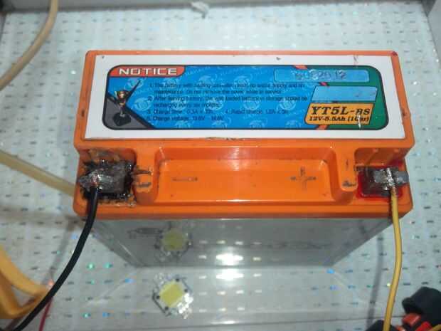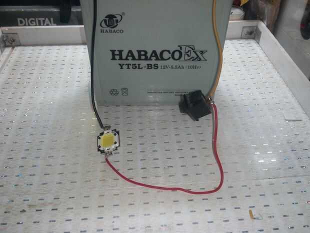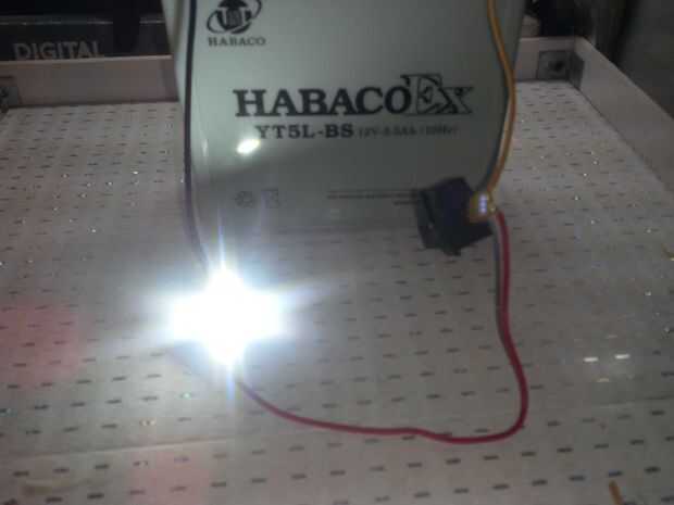 El pegamento utilizado para fijar el chip del LED, también absorber calor desde el chip. Lo cool es que este LED funciona con tensión de 9V a 12V por lo que todavía funciona incluso cuando la batería se está agotando.