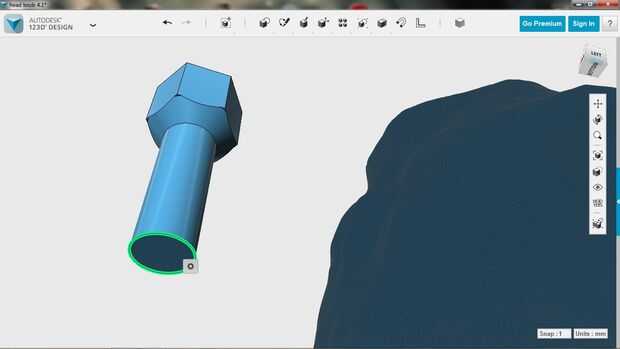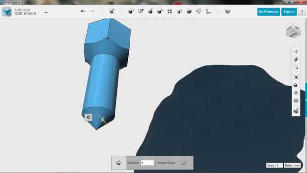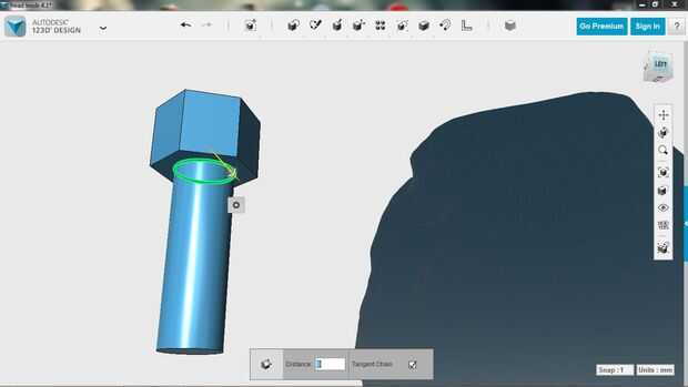Paso 7 Si alguna vez ha utilizado una impresora 3D, Sabe usted que utilizando material de apoyo puede ser una verdadera molestia! Ahora vamos a modificar la forma de "tornillo" por lo que no debemos utilizar material de apoyo. Esto lo haremos usando "Chaflanes" en las partes que normalmente requeriría apoyo material.