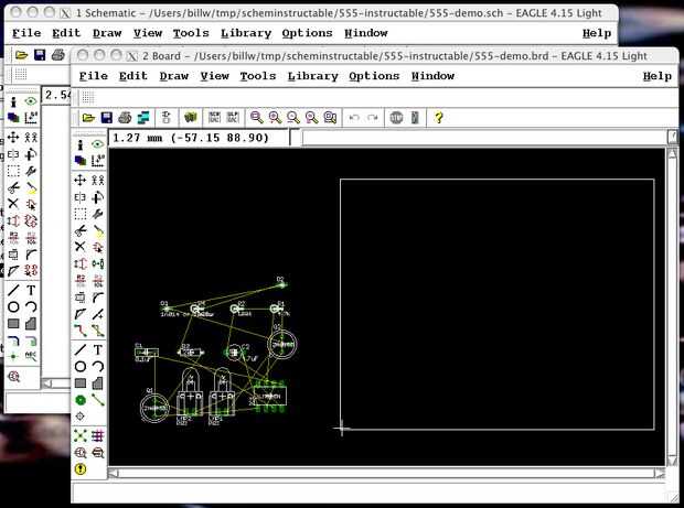 Crear el diseño de PCB consiste en colocar todos los componentes en lugares lógicos y encaminamiento el airwires en un modo que permite el diseño de trabajo.