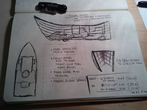 Después de un boceto rápido en nuestro cuaderno práctico, estábamos listos para ir a Lowe, para ver qué materiales, podríamos adquirir. Ahora usted puede estar pensando esto es un poco de locura y sí estamos totalmente de acuerdo con ya. Pero nuevamente, ese es el punto entero de un desafío de diseño. Si sabía que todos los parámetros y en pensamiento esta idea, entonces nos podríamos incluso reconsiderar pasar las próximas doce horas construyendo un barco del faux para un minuto largo cortometraje.