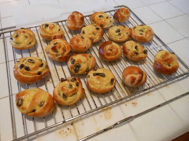 Para pulir los rollos, se prepara en una cacerola un jarabe de azúcar y agua y después agua hirviendo por unos minutos se utilice para la recién horneados rolls. Dejan enfriar un poco para que se seque el jarabe.