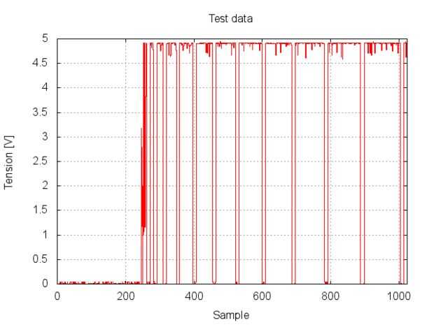Para probar el circuito y la adquisición de datos (DAQ) utilicé un segundo Arduino con un dibujo simple que genera pulsos cuadrados con longitudes diferentes. También escribí un python script que habla con Girino y le pide que adquirir algunas series de datos y ahorra uno de esos en un archivo.