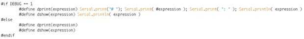 #define dprint(expression) Serial.print ("#"); Serial.Print (#expression); Serial.Print (":"); Serial.println (expresión)