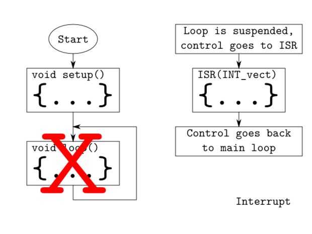 Las funciones que se ejecutan se llaman Rutinas de servicio de interrupción (ISR) y son funciones más o menos simples, pero que no tome argumentos.