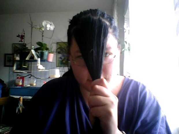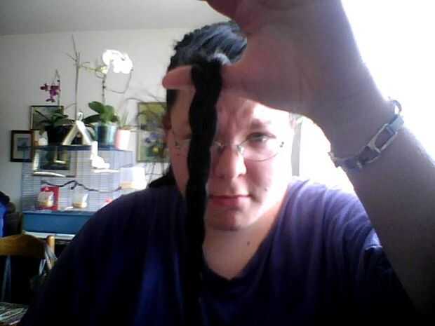 Después de aprox. 4 a 5" después de las raíces, iniciar una trenza muy floja y atar.