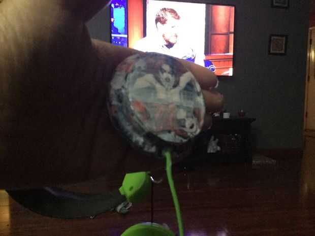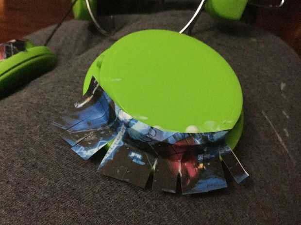 Después de colocar todas las imágenes donde pertenecen añadir una capa más de Mod Podge para proteger a la nueva imagen de collage en los audífonos con estilo renovados!