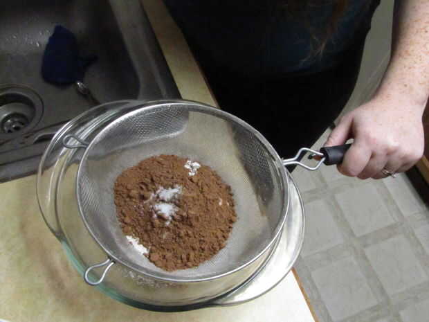 Cernir juntos harina, el cacao y la sal en un tazón pequeño