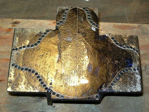Aquí está mi Asamblea después de soldados a y am en el proceso de corte para que coincida con la base de tornillo de banco. Yo había soldado en 2 piezas de ángulo con una placa plana en el centro. Cuando tuve todo tamaño correctamente sujeta todo a otra chapa gruesa de acero, para mantener todo alineado mientras que soldado con autógena. Por supuesto las fichas en esta pieza tienen que corresponder a la sección de caja ya hecha en la caja del cilindro. Esto se hace correctamente el tamaño de la placa central. Recortar y medir, ajustar, medir, hasta que se ajuste. Recorta la placa por fresado en mi molino. Tomé varias pasadas de luz, hacer furtivamente para arriba en la medición final.