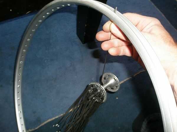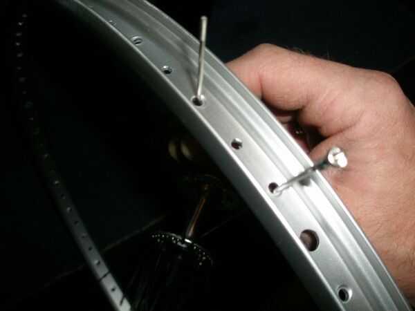 Poner el primer rayo en el borde justo al lado del agujero de la válvula (esto es un agujero de la mamila original).