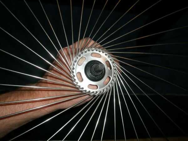 Terminada la rueda delantera no habrá ninguna diferencia de qué manera insertar la rueda en la bicicleta como el giro se verá igual de cualquier manera.