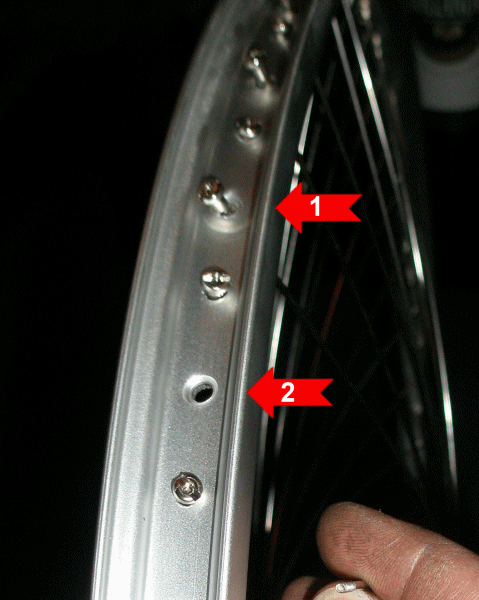 Si no Inicio da vuelta todos los pezones hacia la derecha la misma cantidad (comienzo por el agujero de la válvula para mantener la pista) por ejemplo empezar con 1 vuelta cada pezón, media vuelta también es posible.
