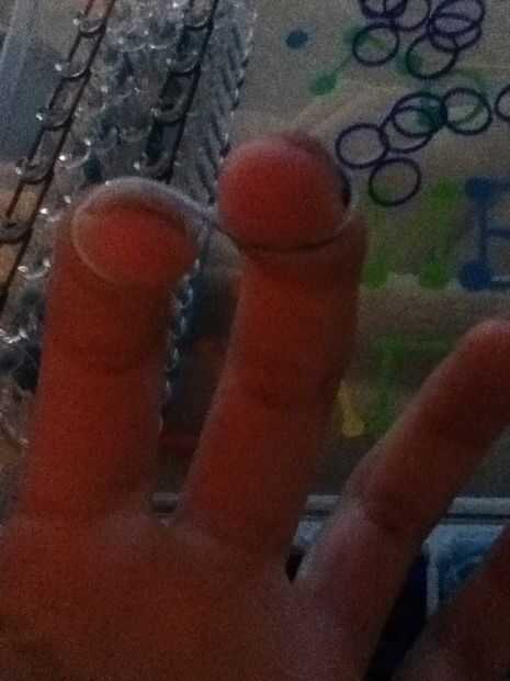 esta es una manera fácil y divertida para hacer una pulsera de cola de pescado!Paso 1: materiales Todo lo que necesitas son-2 dedos-bandas de telar del arco iris-una 'c' o de ' clip-pacienciaPaso 2: a partir de Tomar una banda y hacer y signo del inf