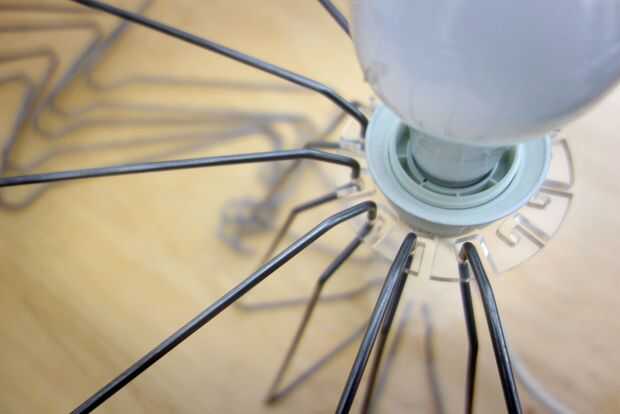 J las ranuras en la pieza central de la sostener el conjunto en tensión y montar el casquillo de la bombilla.