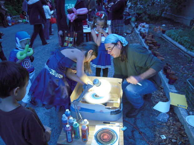 Mesa de arte lo suficientemente resistente para ser utilizado en una feria anual de la vuelta.