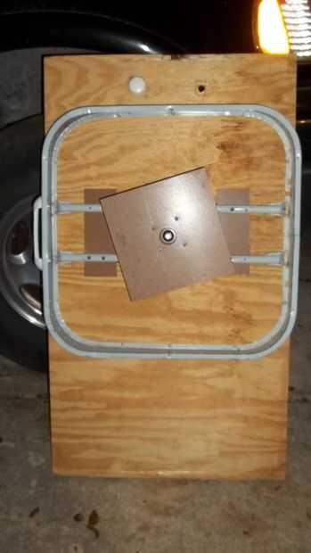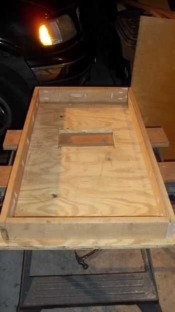 Tapa de tabla es desecho de madera contrachapada de 3/4". La pieza tenía ya era Plaza mortíferas así que adoptó como el tamaño de mi mesa. Cualquier tamaño acoge su ventilador es bueno - espacio extra para albergar suministros es aún mejor.