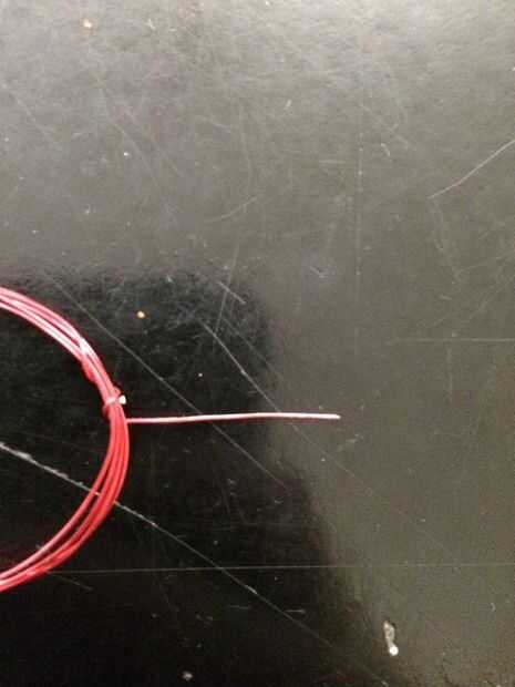 Tomar el papel de lija y afeitarse todo el esmalte rojo en un lado del cable extra