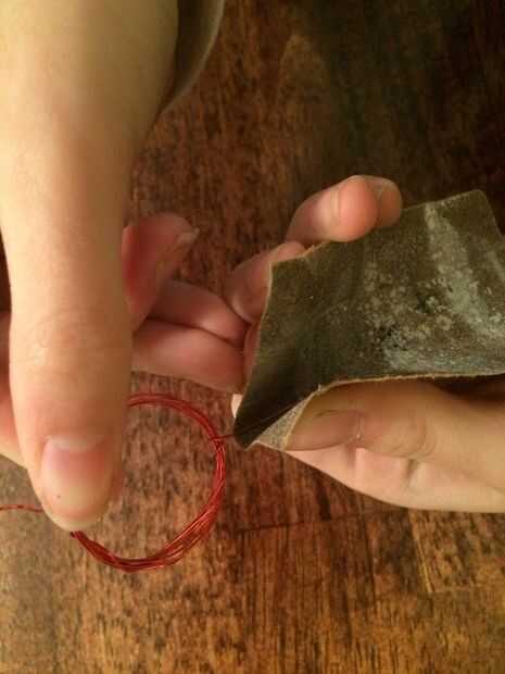 Afeitado de sólo la mitad del otro lado del cable extra, la manera horizontal, por lo que el otro lado es todavía rojo.