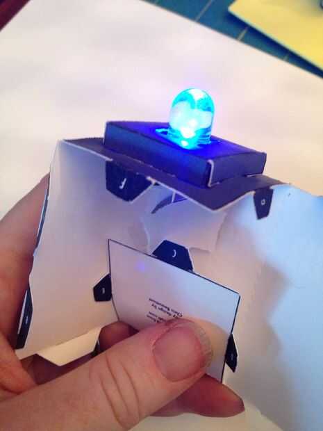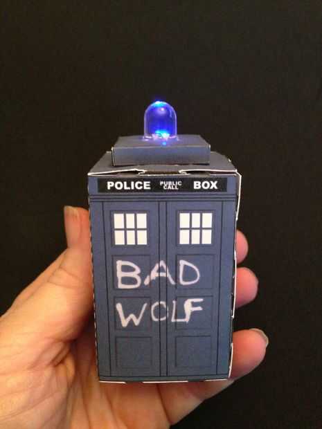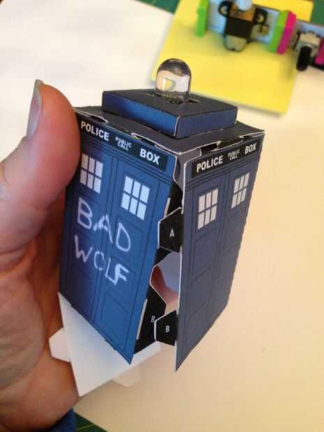 Finalmente, coloque cuidadosamente el Tardis en la tarjeta de apoyo, tendrás que navegar por la batería y ajuste así.