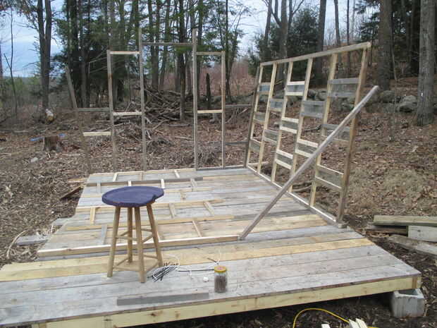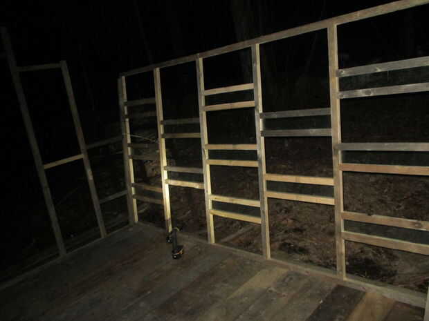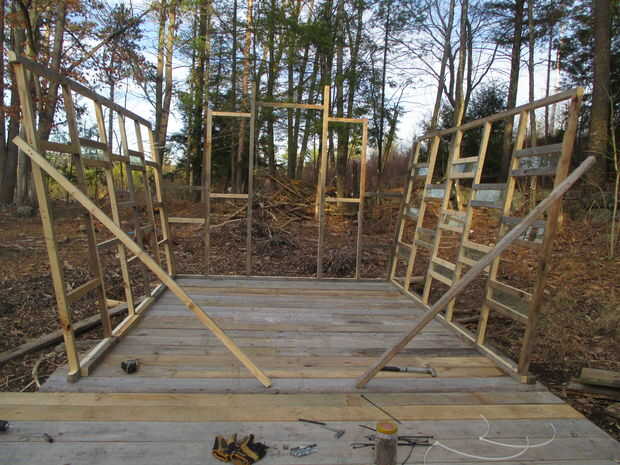 Utilizando placas de soporte, tornillos, llaves de diagonal y resistente zipties fue suficiente para mantener la estructura lo suficientemente estable como para incluso los huracanados vientos de marzo. En este punto la estructura es ligera, excepto para los insertos de vidrio, que eran la parte más pesada.