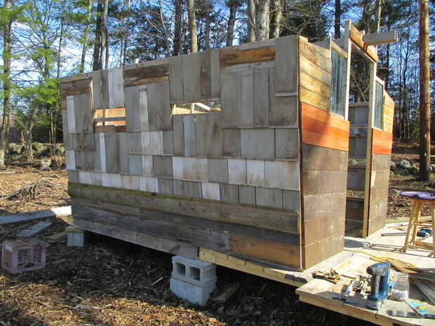 Las tablas delanteras son de una variedad de fuentes, la casa, un galpón liviano y un piso.