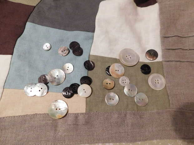 1. tengo una selección de botones de concha. Ordenado a traves de y decidido sobre los oscuros como los que tenía la mayoría de. (Además, ve muy bien!)
