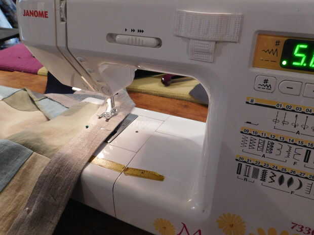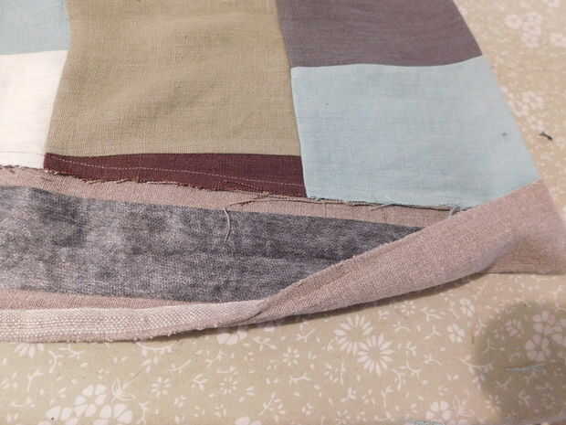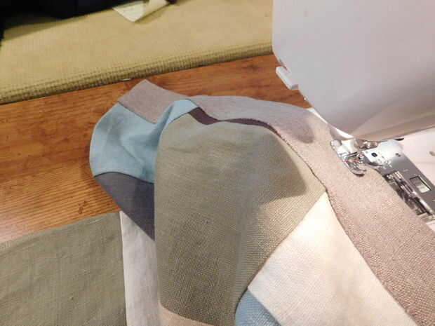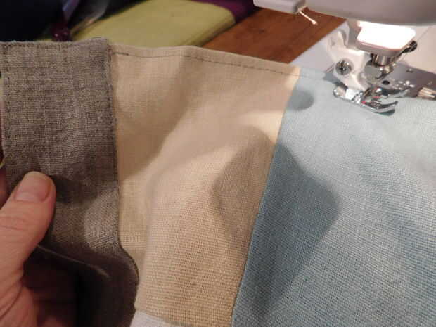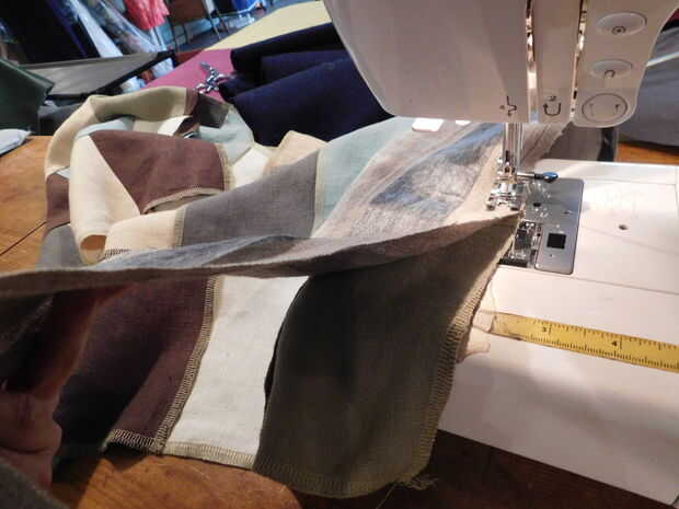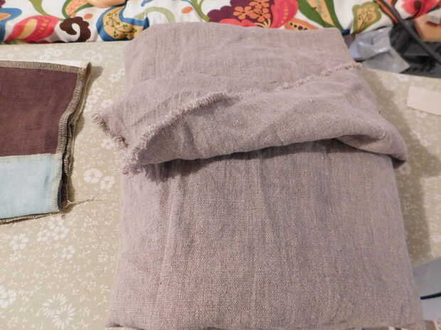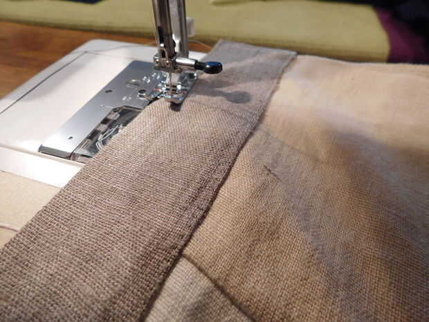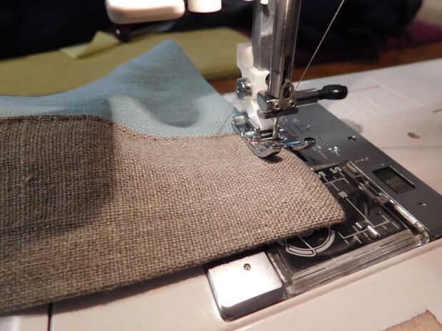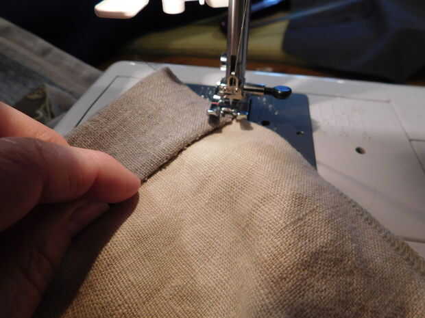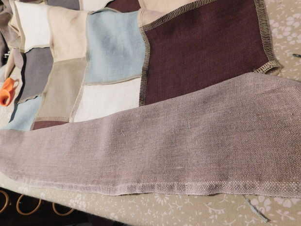 8. cubrió, listos para puntadas de revestimiento, con una puntada de máquina muy largo, como lino puede ser estirado y torcido fácilmente.