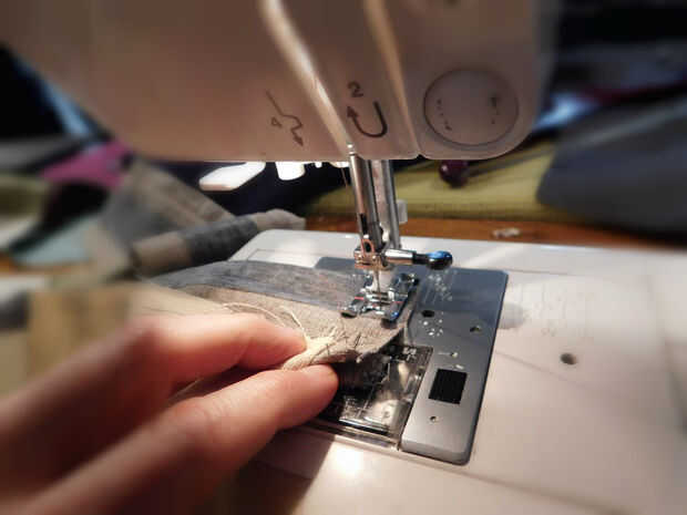 6. cose la parte inferior del borde. Importante para frescura, cierta rigidez y para un aspecto acabado.
