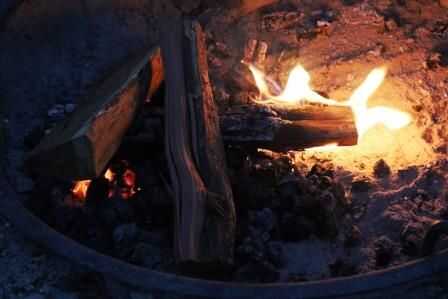 Partido de algunos registros más grandes en tiras pequeñas y medianas para ayudar a empezar. Una vez que el fuego está ya en funcionamiento, la pila en los troncos grandes. Pero para empezar, sobre todo con madera seca cuestionable, lo destruyen.