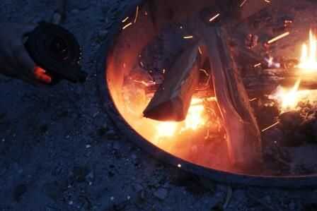 Es aquí un impresionante hack: usar el inflador del colchón como soplador. Dirigido a la base del fuego, tendrán incluso la madera más húmeda el rugir en ningún momento. Llamada que nos lento - habíamos sido arrodillados y soplando lungfuls de aire en un fuego húmedo luchando durante años, antes de ese momento bombilla. Sentado a pocos pies de distancia era un inflador de colchones que fuelle de cualquier Herrero a la vergüenza. De nada.