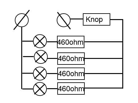 - 4 de 2 weerstanden van minimaal 460 ohmios