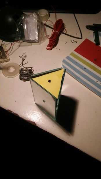 - Snijd de spiegels (3 keer afm. 7 x 12 cm) este drie vormen een kistje waarde cuidado en interfaz zodat de draden niet doorgesneden worden puerta het glas.