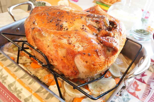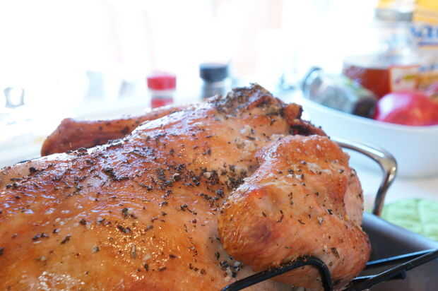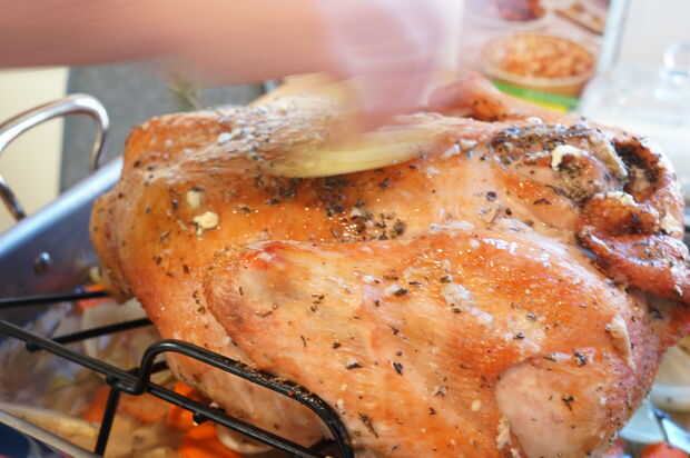Retire el pavo del horno en medio el tiempo de cocción.