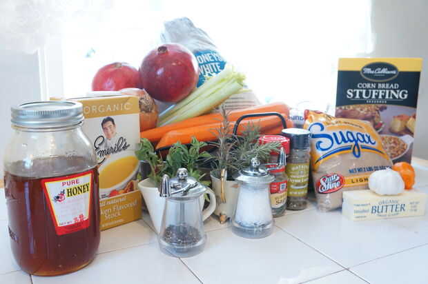 Pan tostado, licuadora (opcional), pinzas, tenedor largo, cortar/pelar cuchillo cuchillo, cuchillo de chef, tabla de cortar, cuencos, ollas, tazas y cucharas, jeringuilla para pavo o cucharón y un cepillo hilvanado de medición.