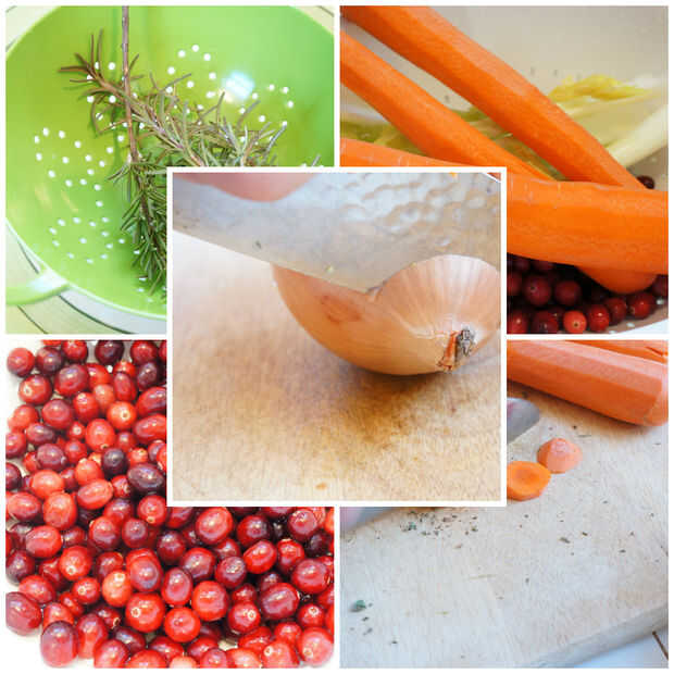 Para una cocción uniforme del pájaro salió el pavo y permita que alcance la temperatura ambiente. Cortar la mantequilla en pequeñas astillas (aproximadamente veinte palitos de 1/2 cm y dejar el restante conjunto de palo para Hilvanar la mantequilla y coloque en el congelador hasta que duro, esto hará que los cubos fáciles de insertar en el ave y para hilvanar más fácil más adelante).