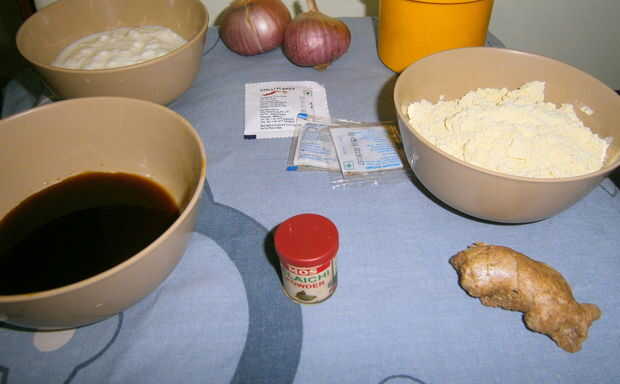 Harina de frijol garbanzo / harina de garbanzos / Besan (o) harina de maíz – 1/4 taza (poco menos o más hasta que se forma una masa)
