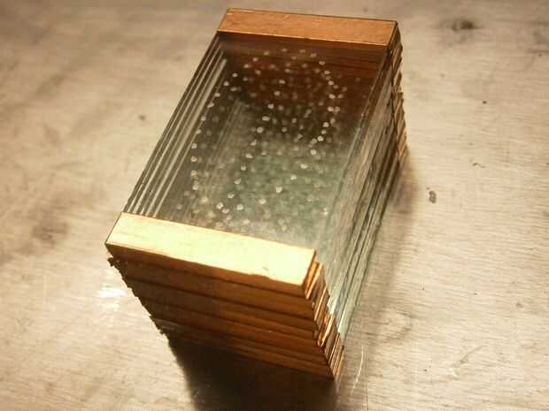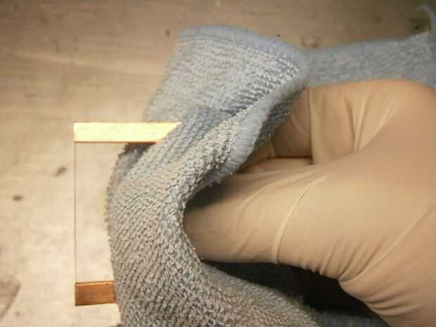 La tapa y bordes inferiores con cobre cinta y aplanan. Después, limpie todos los paneles con limpiacristales y un paño suave. Asegúrese de que están tan limpios como sea posible porque diez veces la tierra de uno es demasiada suciedad y no se verá claro.