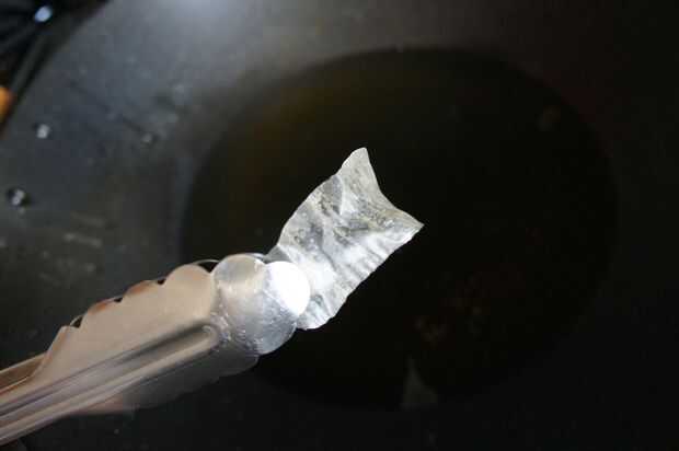 Se trata de gastronomía molecular llevado a su casa. Implica acción de patata, fécula de patata y un gel de secado lento. Los dos primeros pasos son una brisa, pero os advierto de antemano: usted debe tener paciencia para llevar a buen término. Los últimos pasos requieren que deshidratar el gel y luego fría los pedacitos en aceite (como los reales). Pero el resultado es oh-tan-valor-it (cada caloría, demasiado).