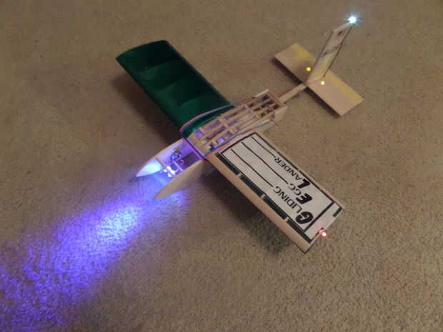 Luego colocar en la decoración final y equilibrar el plano. Agregar pesas poco (clips, monedas, cuartos) y ahora está listo para lanzar su planeador.