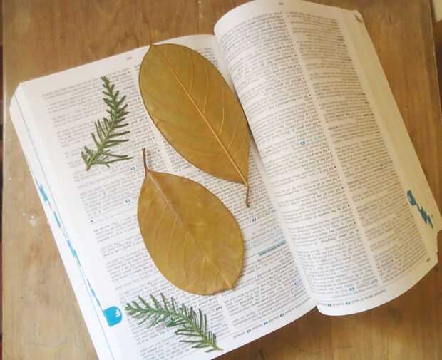Puso las hojas recién recogidas en un libro pesado durante 5-10 días a la prensa en seco.