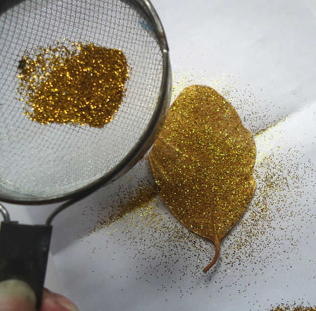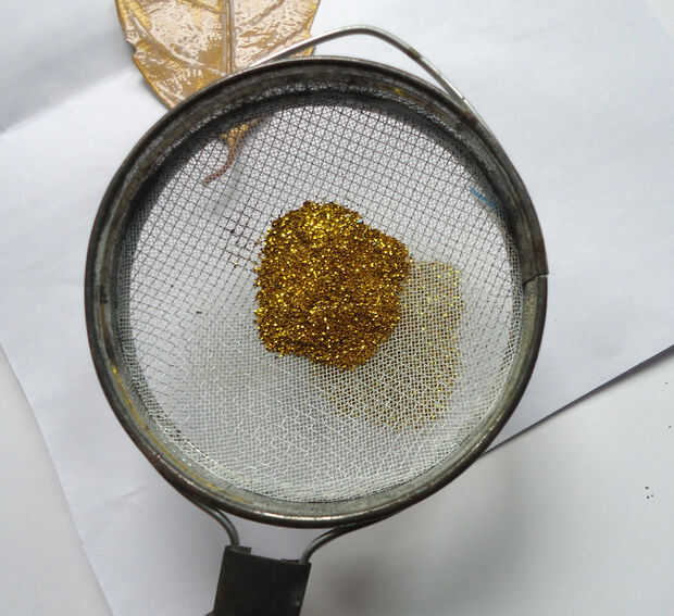 Luego agitar suavemente el colador por encima de la hoja pegado.