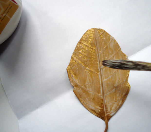 Cuando la pintura está todo seco, pegamento en toda la hoja con un pincel.