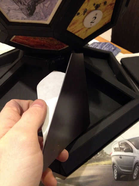 Corte trapezoidal secciones de adhesivo del imán hoja y pegar en cada uno de los huecos de la base. Ahora tienes un lugar para guardar todas tus piezas.
