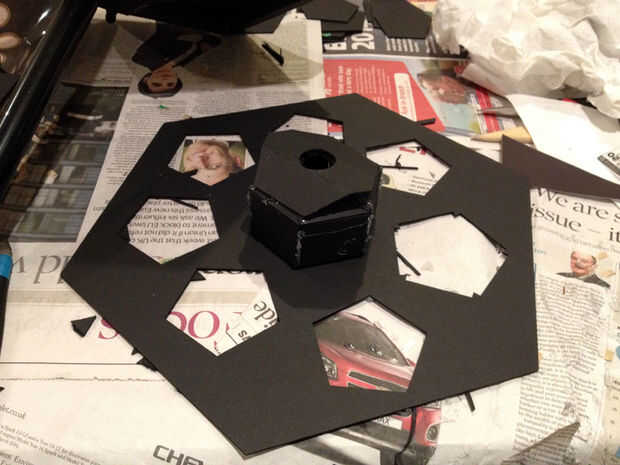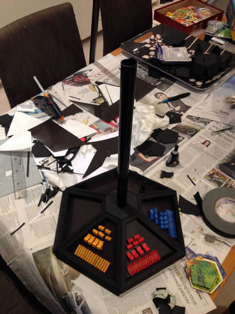 Pegar el resto de la base en la parte superior, luego inserte el eje. Usé una longitud de tubería plástica de 25 mm. Cuánto tiempo desea que el eje que dependerá de la altura de la mesa y cuánto gusta golpearse la cabeza contra la mesa mientras que intenta mirar en el polo sur medio juego.